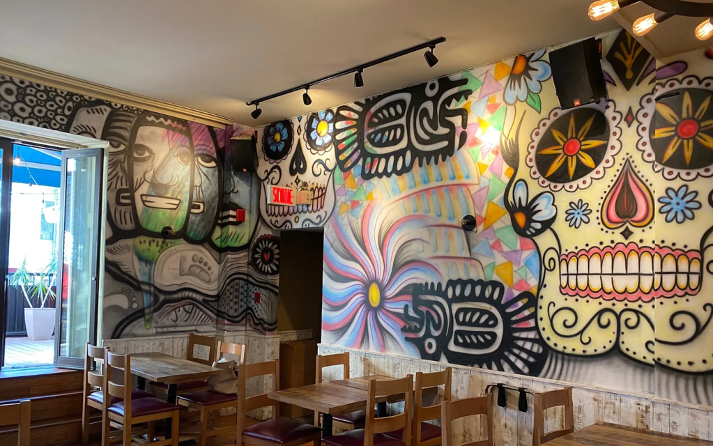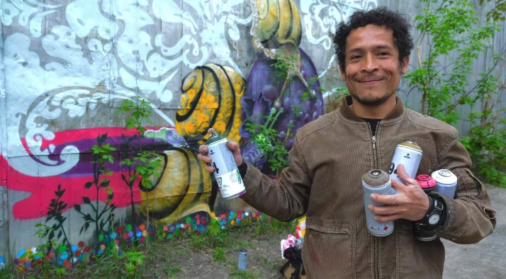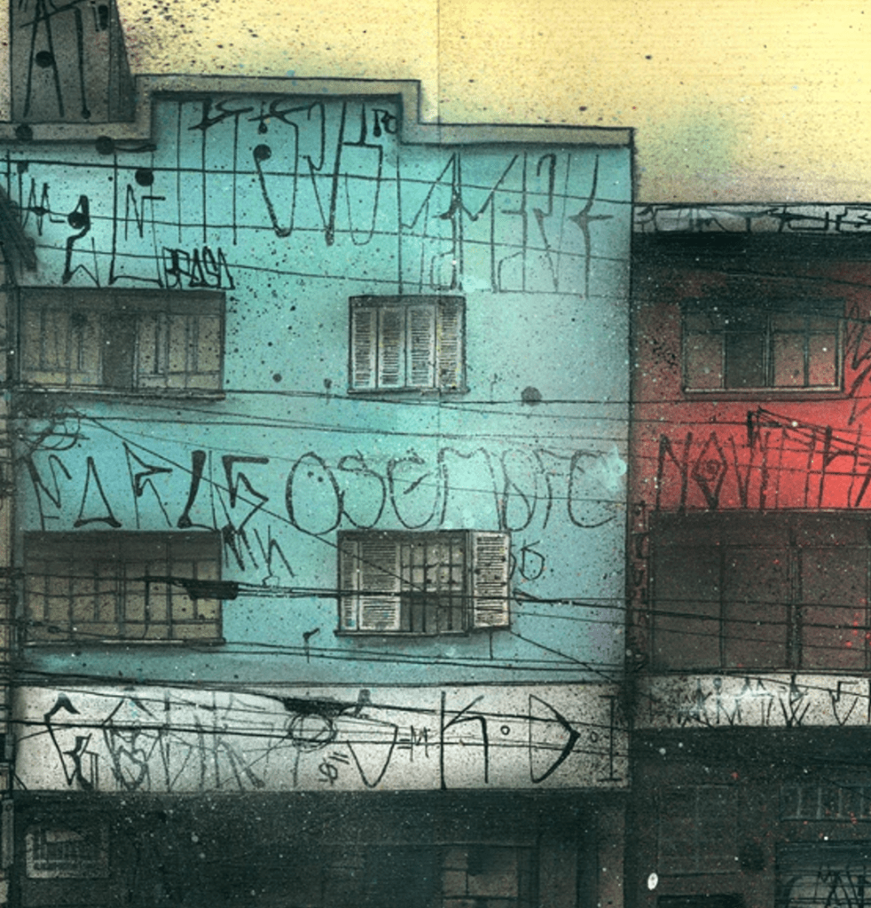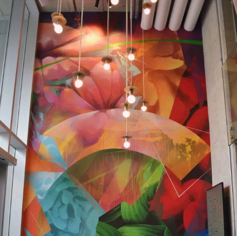 En pleine possession de mes moyens, j’utilise aujourd’hui les canettes en aérosol (pour des effets de style graffiti) pour effectuer mes oeuvres sur toiles et bien sûr sur les murales de grandes dimensions.